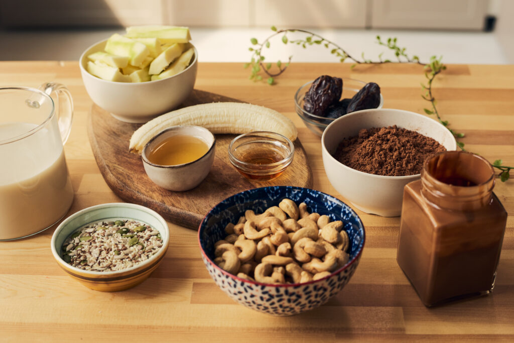 • 2 φλιτζάνια δημητριακά (π.χ. βρώμη, κινόα, ρυζόψωμο)
