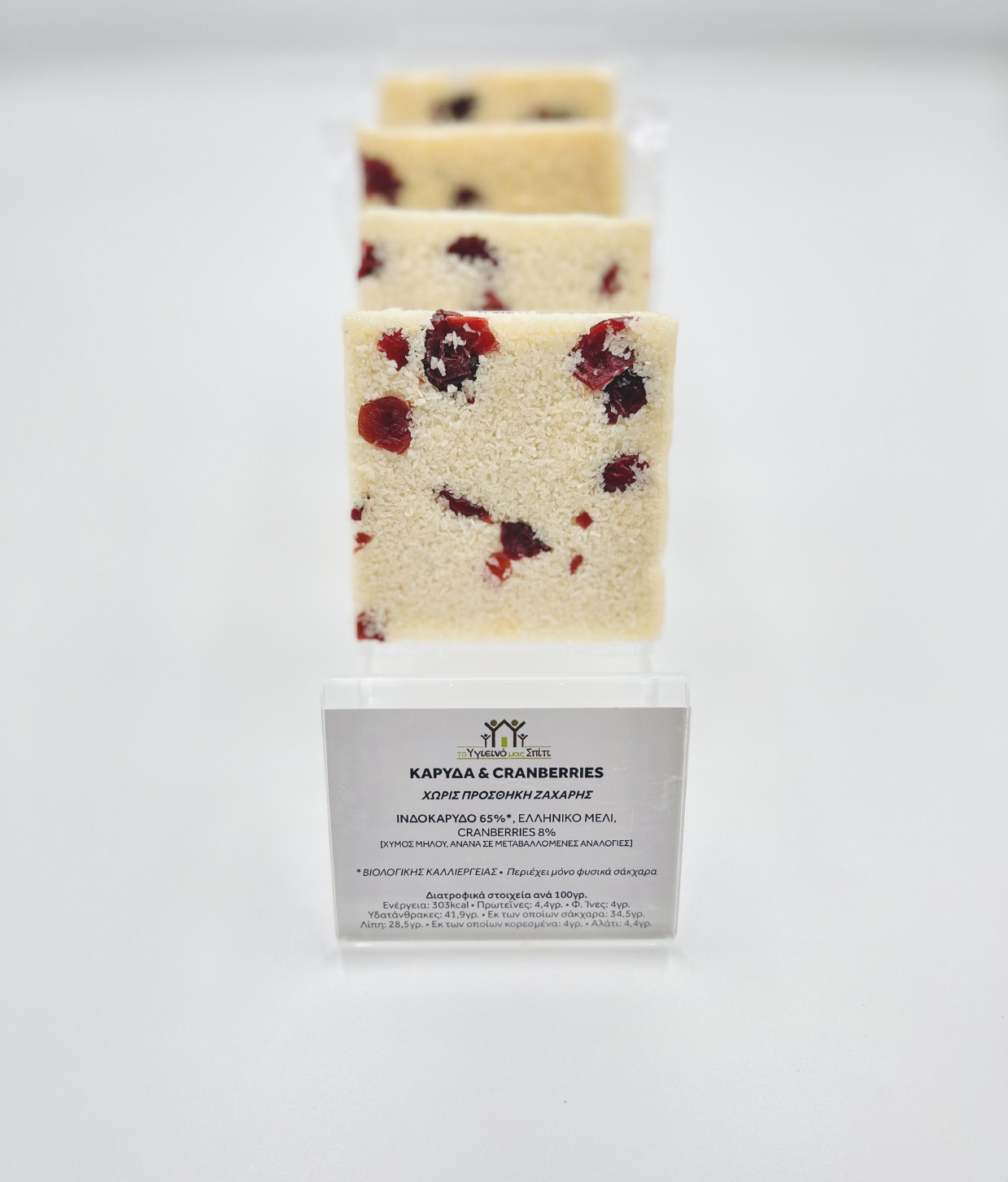 Συστατικά: Ινδική καρύδα, κράνμπερι και Ελληνικό μέλι.